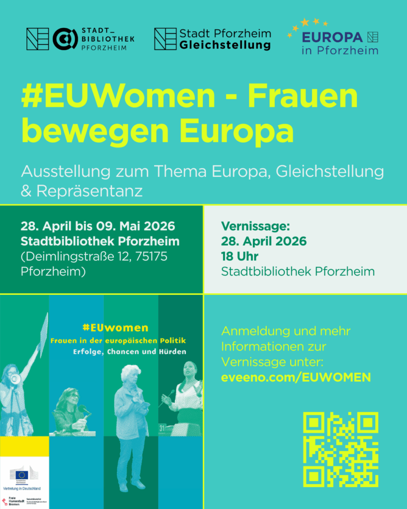 Von Dienstag, 28. April, bis Samstag, 9. Mai 2026, wird die Ausstellung „#EUWomen – Frauen bewegen Europa“ im Foyer der Stadtbibliothek Pforzheim gezeigt. Dabei steht die Frage im Vordergrund: Wer gestaltet das moderne Europa und wer legte den Grundstein dafür? Oft sind die weiblichen Stimmen in der Geschichtsschreibung weniger präsent als die männlichen. Die Wanderausstellung bricht dieses Muster auf. Oberbürgermeister Peter Boch betont die Relevanz dieses Themas: „Eine Demokratie ist erst dann voll repräsentativ, wenn Frauen dort mitentscheiden, wo politische Weichen gestellt werden.“ Diese eigentliche Selbstverständlichkeit sei immer noch nicht in ausreichendem Maße Realität. Die Ausstellung mache sichtbar, wie Frauen in Institutionen und Bewegungen Verantwortung übernehmen und damit unsere gesamte Gesellschaft verändern. „Es geht darum, strukturelle Rahmenbedingungen so zu gestalten, dass politisches Engagement für alle gleichermaßen möglich ist“, so der Rathauschef.