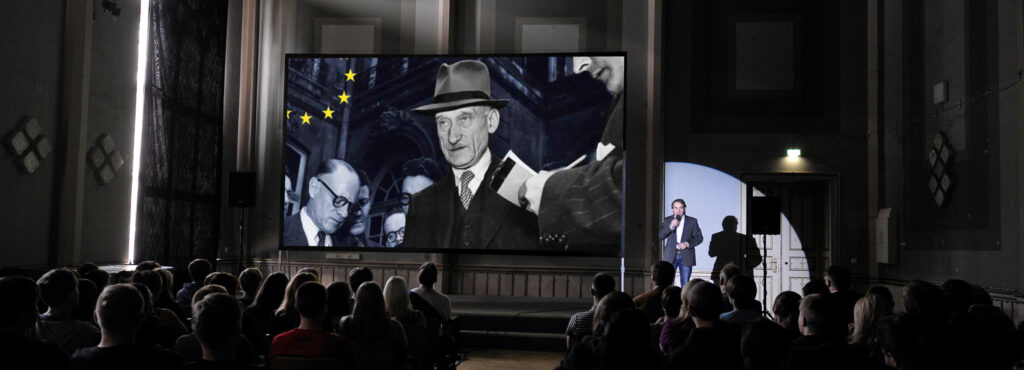 Warum, von welchen Persönlichkeiten und mit welchen Intentionen wurde Europa vor 75 Jahren geschaffen? Wir begeben uns auf eine live kommentierte, multimediale Zeitreise durch die bewegte Entstehungsgeschichte Europas und seine wechselhafte Entwicklung vom Schuman-Plan bis heute.